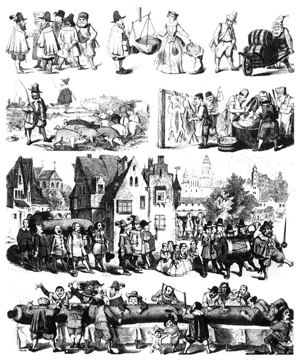 История Длинной колбасы. Рисунок Николауса фон Книллинга. 1860 год