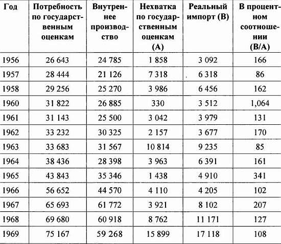 *Государственные оценки нехватки продовольствия, начиная с 1960 г., не включают остатков предыдущего года и недополученного за предыдущий год.