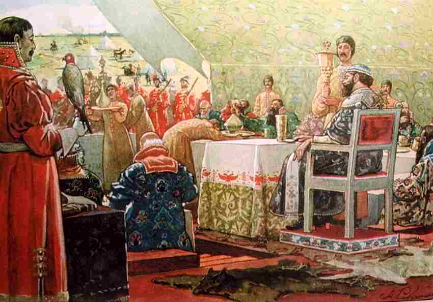 Чувство изящного у него было тоже сильно: он любил свое Коломенское за красивое местоположение, любил до страсти пышные обряды. Царские выходы в церковь, церемонии во время больших праздников, приемы иноземных послов и своих бояр — все это совершалось при царе Алексее по строго установленному чину и гораздо торжественнее и пышнее, чем прежде. Вся жизнь царя представляла как бы стройный обряд. Разные подробности церемоний или церковной службы занимали его порой не менее, чем государственные дела. Набожен и благочестив был он в высшей степени: любил читать священные книги, проводил каждый день часов по пяти в церкви, клал усердно поклоны, посты соблюдал очень ревностно. «Великим постом, — говорит один из его современников, — царь Алексей обедал только три раза в неделю, а именно: в четверток, субботу и воскресенье, в остальные же дни кушал по куску черного хлеба с солью, по соленому грибу и огурцу… Рыбу он ел только два раза в Великий пост и соблюдал все семь недель поста… Сверх обычных постов, он ничего мясного не ел по понедельникам, средам и пятницам — одним словом, ни один монах не превзойдет его в строгости постничества». До свету, часа в четыре утра, вставал он с постели; начиналось утреннее моление, поклонение иконе того святого, память которого чтилась в тот день, чтение какого-нибудь назидательного слова, затем происходило шествие к заутрене. После того приходили бояре, били челом государю, вели разговор о делах и все за царем шли к обедне. В праздники царские выходы были торжественнее, пышнее и с соблюдением известного чина; смотря по празднику, надевалась и различная одежда, более или менее пышная. После обедни царь занимался делами: читались доклады и челобитные; в известные дни происходили заседания боярской думы. Пополудни дела оканчивались и следовал царский обед. После обеда царь спал до вечерни; затем шел к вечерне, после которой проводил время уже в своем домашнем кругу, играл в шахматы или слушал рассказы бывалых людей о различных диковинах в чужих краях. Так обыкновенно шла — ровно, чинно и благочестиво — царская жизнь; она служила образцом и для бояр.