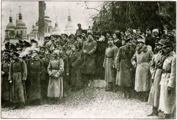 Киев, 1917 г. III Украинский военный съезд. Михновский стоит на ступеньку ниже Петлюры и Грушевского