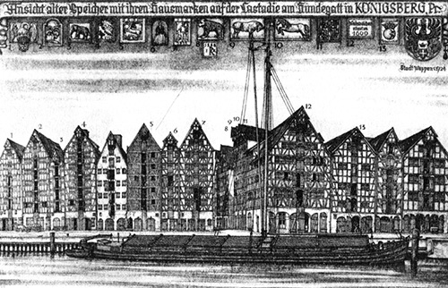 Район портовых складов Кёнигсберга. Ластадия. Копия с гравюры 1724 года