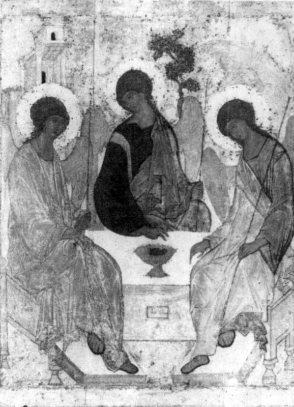 Троица. Икона. Андрей Рублев. Конец XIV в.
