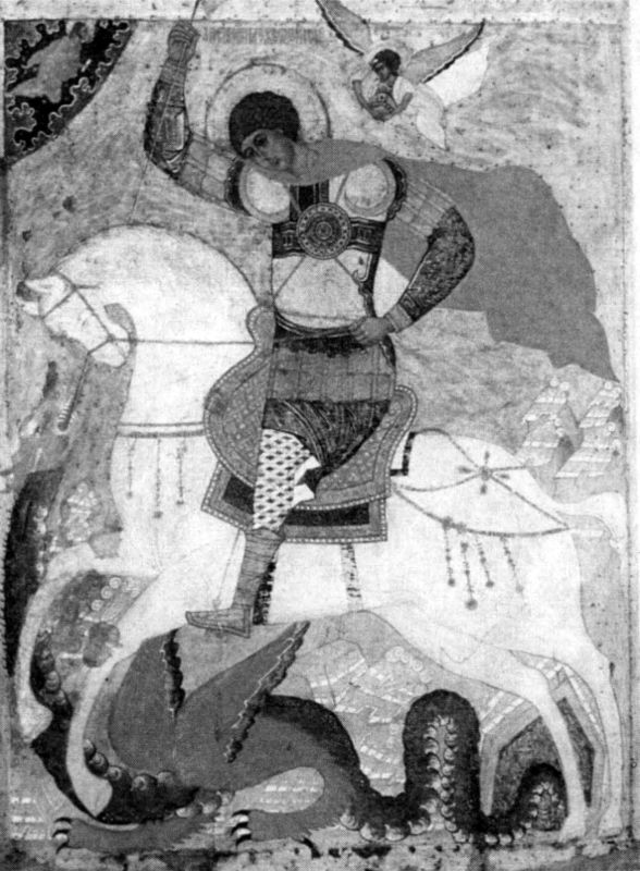 Святой Георгий, поражающий змея. Икона. Новгород, XVI в.