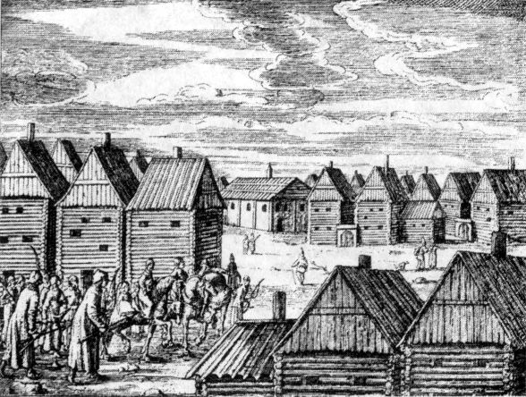 Московская улица в XVI в. Из книги Адама Олеария «Описание путешествия в Московию». 1663 г.