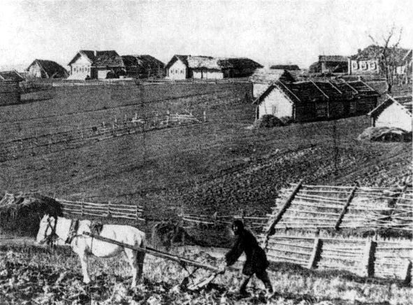 Крестьянин с плугом на своем поле. Конец XIX в.