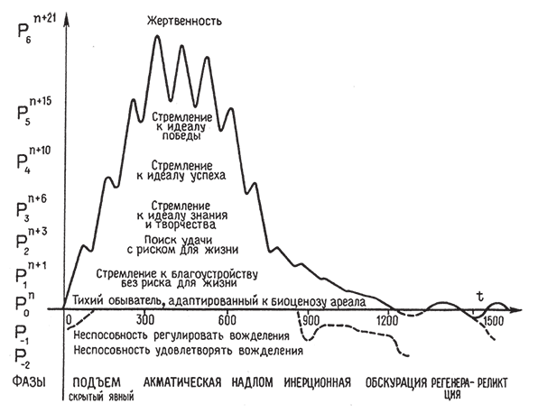 Рис. 4. Изменение пассионарного напряжения этнической системы (обобщение)