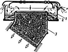 Рис. 75. Инерционно-контактно-масляный воздухоочиститель: 1 — корпус воздухоочистителя; 2 — масляная ванна; 3 — фильтрующая набивка.