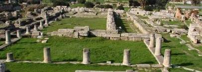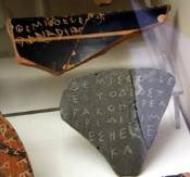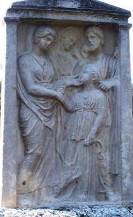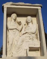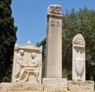 У Священной дороги выставлен лекиф в честь военачальника Аристомаха с "вполне семейным" рельефом: умершего приветствует Деметра, а рядом, видимо, Персефона.