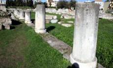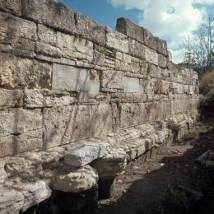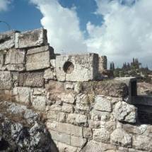 Городская стена в районе Керамика – видна часть нагробия, встроенная в стену – плита с круглым отверстием для вставки цилиндричкской части