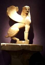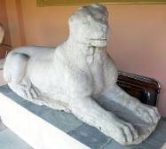 Архаические надгробия этого типа нередко увенчивались фигурами сфинксов, связанных с загробным культом. В музее представлена статуя сфинкса, сохранившая следы раскраски.