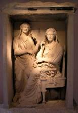 Еще через некоторое время богатые афиняне стали устанавливать на могилах не вазы, а статуи покойных (часто в наисках – обрамлениях в виде рамы-"домика"), достигавших реальных размеров человека.