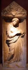Лекиф Аристомаха, стела ок. 380 г. до н.э., женщина с зеркалом, стела Патана и Поликтара