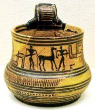Сосуды с геометрической росписью: скифос, пиксиды с фигурками коней и ойнохойя