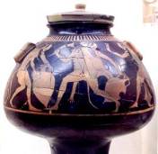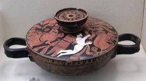 Сосуды со сценами приготовления к свадебной церемонии. Поминальные дары 370-360 гг. до н.э. : пиксида и лекана