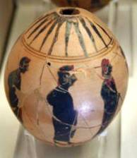 Близким к керамическому яйцу (по форме и, вероятно, предназначению) погребальным предметом являлся формискос – колбообразный керамический сосуд с камушком внутри. Такая погремушка могла отпугивать демонов. Терракотовое яйцо из Троянского клада Шлимана также представляло собой погремушку.