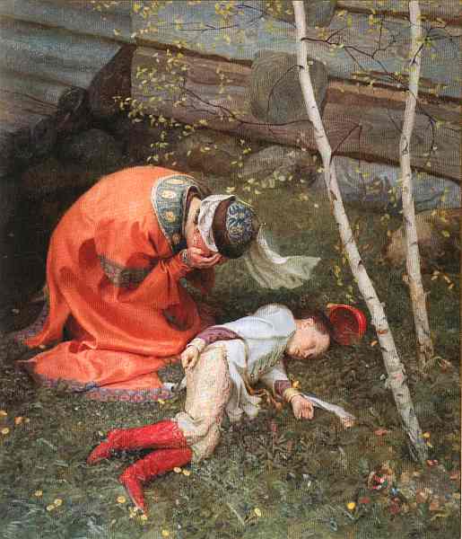 15 мая 1591 года в полдень произошло в Угличе потрясающее событие. В соборной церкви ударили в набат. Народ сбежался со всех сторон, думая, что пожар. На дворцовом дворе увидели тело царевича с перерезанным горлом; над убитым вопила в отчаянии мать и кричала, что убийцы подосланы были Борисом, называла Битяговских — отца и сына, Качалова и Волохова. Рассвирепевший народ убил их всех по указанию Нагих, умертвил и еще нескольких человек, заподозренных в согласии со злодеями.