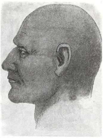 Рис. 60. Чоловік з поховання на Виноградному о-ві. Реконструкція М. М. Герасимова. Неоліт.
