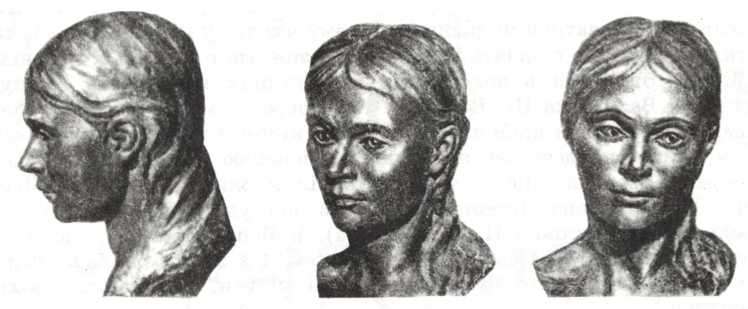 Рис. 57. Чоловік з Вільнянського могильника. Скульптурна реконструкція Г. В. Лебединської. Неоліт.