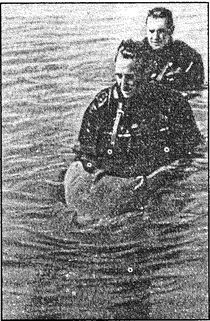 Заполнив балластную цистерну, они погружаются на дно, на глубину 14 м. В этот момент у водолаза отказывает кислородный прибор, но командир решает действовать один и приказывает помощнику всплыть и оставаться на воде неподвижным.