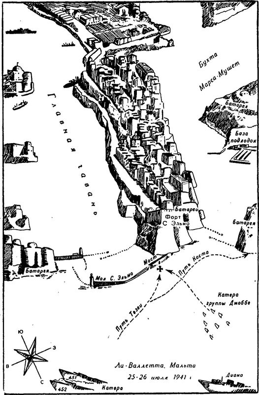 Вместо буксировки в район операции все катера и торпеды были подняты на борт быстроходного шлюпа «Диана» (бывшая яхта Муссолини). Возглавил набег командир флотилии MAS, капитан 2 ранга Маккагатт. Команда Маккагатта покинула бухту Аугусту 25 июля 1941 года. На борту «Дианы» находилось 9 боевых катеров и маленький катер с электрическим двигателем (а потому совершенно бесшумный) для буксировки «Майяле» к точке запуска. Именно в этот момент Ла-Валлетта была битком набита кораблями. 24 июля в гавань вошел конвой, с боем прорвавшийся на Мальту. Около полуночи 25 июля катера были спущены на воду в 20 милях от острова и в сопровождении двух торпедных катеров двинулись к цели. Через три часа электрический катер, буксировавший «Майяле», находился в 1000 ярдах от входа в гавань. Отказ мотора на одной из торпед задержал начало операции еще на час.