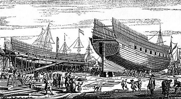 Тогда за два месяца мужики и солдаты протащили по лесам и болотам корабли «Святой дух» и «Курьер», и, пройдя по Онеге, Свири и Ладоге, корабли эти якобы подошли к устью Невы, хотя и непонятно, что они делали здесь при штурме Нотебурга.