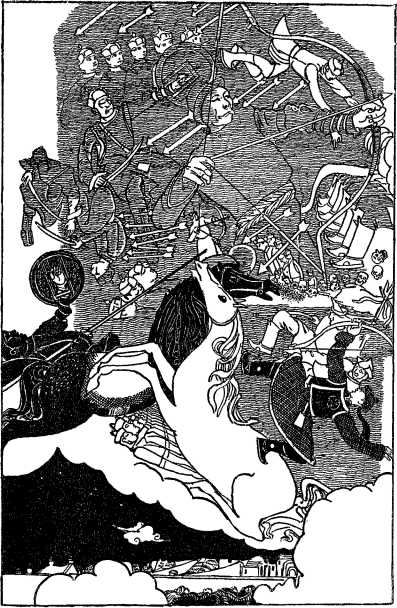 Вот показался Хара-Цзюнь-гуань в кольчуге из синего железа. У него тонкое темное лицо с бородкой; сейчас на князя страшно смотреть: он только что заколол своих жен и детей, — он знает, что никто из битвы не выйдет живым и не споют над ними плакальщицы и жены: