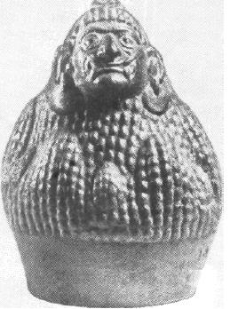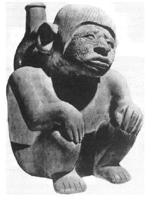 Рис. 63. Мочика. Сосуд в виде божества кукурузы. Керамика.