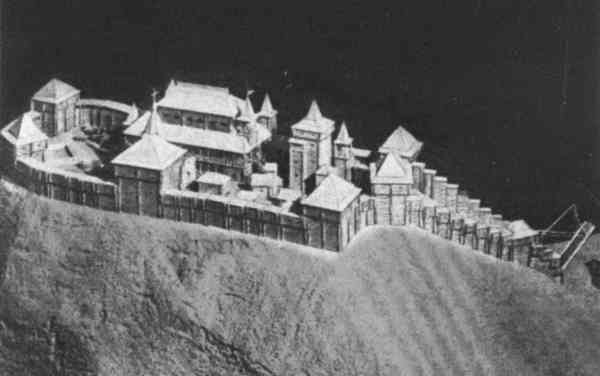 Любечский замок. Предположительно построен Владимиром Мономахом в годы его черниговского княжения. Реконструкция Б.А. Рыбакова