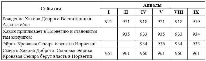 Основные вехи жизни конунга Хакона Доброго, согласно анналам[292], приведены в табл. 7.