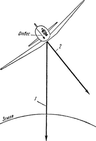 На стоянке шнурок с отвесом будет, вообще говоря, направлен к центру Земли, то есть по направлению истинной вертикали, которая всегда перпендикулярна плоскости горизонта. В полете же отвес может занимать относительно плоскости горизонта самые различные положения. Человек, находящийся в самолете, ощущает действие силы тяжести примерно в том же направлении, что и отвес (рис. 26).