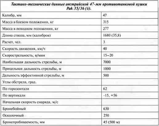 Тактико-технические данные австрийской 47-мм противотанковой пушки Pak 35/36 (?).