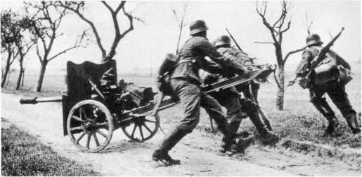 Учения вермахта — расчет разворачивает 37-мм противотанковую пушку Pak М 37 (t). Осень 1939 года (ИП).
