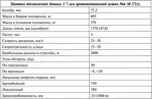 Тактико-технические данные 3 7-мм противотанковой пушки Pak М37(t).