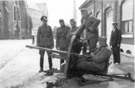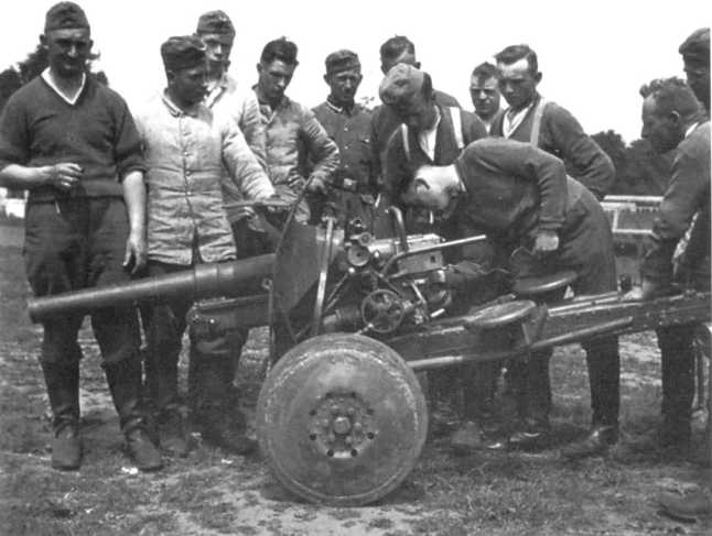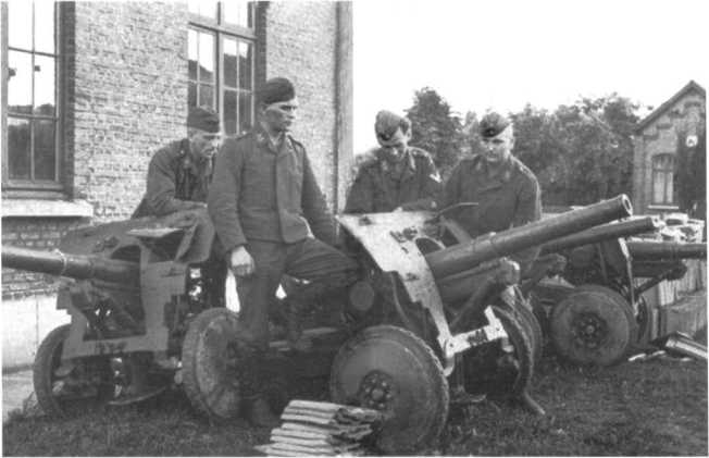 Немецкие солдаты у трофейных бельгийских противотанковых пушек SA.FRS, позже получивших обозначение Pak 185 (Ь). 1940 год (АСКМ).