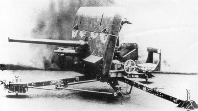 40-мм противотанковая пушка Pak 192 (а) — английская двухфунтовка Q.F.Mk.VII, показанная в боевом положении на разложенном лафете со снятыми ходами (ИП).