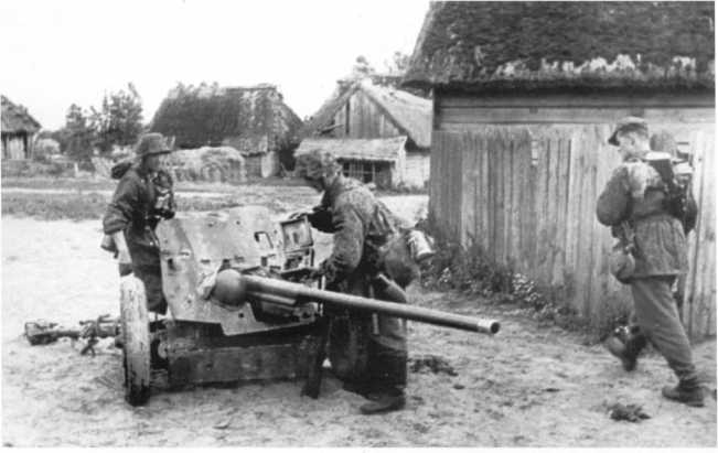 Немецкие солдаты осматривают трофейную советскую 45-мм противотанковую пушку образца 1942 года. Лето 1943 года. В вермахте такие орудия получили обозначение Pak 186 (r), хотя фотографий их использования немцами автор не видел (РГАКФД).