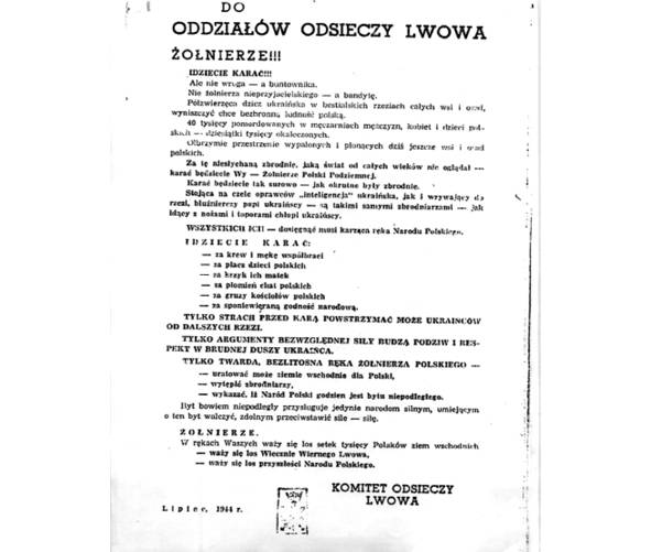Отже, навесні 1944 р. польське підпілля Галичини готувалося до масштабної антиукраїнської операції. Видано листівку «До українського та православного населення», якою оголошувалася своєрідна «реконкіста» проти українців.