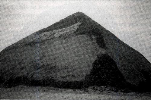 Рис. 22. Дахшур. Изогнутая пирамида, на северо-восточном углу видны два направления строительства. 1999 г.