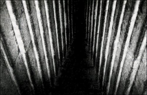 Рис. 21. Дахшур. Верхние стены внутренней камеры Красной пирамиды. Утопленные стены аналогичны Большой галерее в Великой пирамиде, использовались, вероятно, для создания гармонического акустического резонанса. 1997 г.