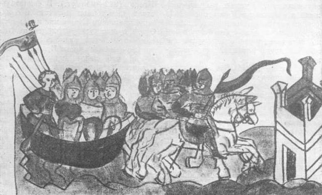 Поход Олега в Царьград. Миниатюра Радзивилловской летописи