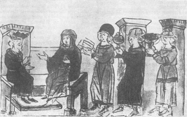 Ольга у византийского императора. Миниатюра Радзивилловской летописи