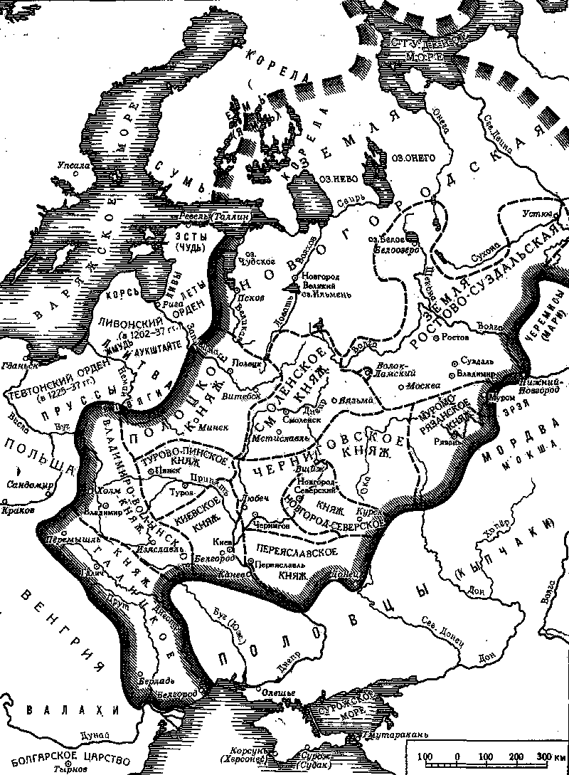 Создание крупных экономических областей, преодоление замкнутости феодального натурального хозяйства, установление экономических связей города с деревней — все эти прогрессивные явления, уже хорошо заметные в русской жизни XII–XIII вв., не поспевали за катастрофическим распадом недавно сложившихся полнокровных и сильных русских княжеств.