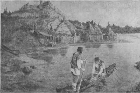 Одно из самых ранних свидетельств о славянах — драгоценные строки в «Германии» Корнелия Тацита (98 г. н. э.) — говорит нам об их подвижности и о походах как на север, так и на юг: «Венеды заимствовали многое из их (сарматских) обычаев, ибо они простирают свои разбойничьи набеги на все леса и горы, возвышающиеся между певкипами и феннами»[10]. Под феннами, живущими в плетеных хижинах, не знающими земледелия и охотящимися с костяными стрелами, нужно, очевидно, понимать народы далекого северо-востока Европы. Певкины — народ, живущий в то время в дунайских гирлах, входивших в состав Римской империи. Тацит сообщает нам как о внедрении славян в среду финно-угорских охотничьих племен, так и о походах на пограничные римские земли, где находились римские крепости. О местоположении острова Певки, по имени которого названы певкины, Плиний пишет: «…Истр… изливается в Понт шестью широкими устьями. Первое устье — Певкийское; недалеко от него лежит сам остров Певка…»[11]. Счет устьев ведется с юга на север, следовательно, певкины находились внутри омываемого устьями Дуная пространства, и славянам, для того чтобы проникнуть к ним, нужно было преодолеть шесть гирл с болотистыми берегами. Здесь, в Добрудже, были римские города: Диногетия, Трезмис, Новиодунум, Эгисс, Аррубиум, Гальмирис и в конце I в., в эпоху Тацита, стояло два легиона римских войск. Походы венедов на эти задунайские области свидетельствуют о достаточной силе и организованности славянских дружин.