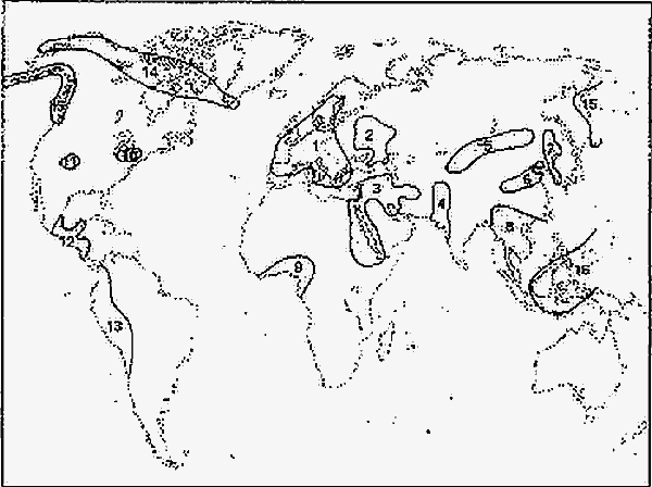 3. Левант, или Ближний Восток; речные аллювиальные долины Месопотамии и Египта в соседстве с полупустынями и горными областями, при наличии вертикальной климатической поясности на высоких плоскогорьях.