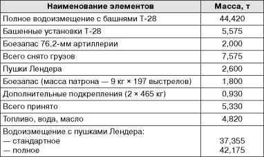 Для того чтобы ввести в строй уже готовые, но не вооруженные корабли, 11 февраля 1941 года Ленречсудопроект провел расчет остойчивости и осадки БКА при замене башен танка Т-28 на 76,2-мм пушки Лендера (результаты сведены в таблицу).