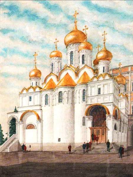 Один из лучших итальянских строителей того времени Аристотель Фиораванти согласился ехать в Москву за десять рублей жалованья в месяц (деньги по тогдашней ценности порядочные). Он в четыре года соорудил великолепный по тогдашнему времени храм — Успенский собор, освященный в 1479 году. Это здание сохранилось до сих пор в Московском Кремле.