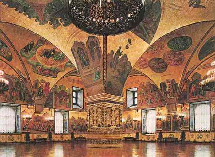 Затем стали строить и другие каменные церкви: в 1489 году был построен Благовещенский собор, имевший значение домовой церкви великого князя; а незадолго до смерти Ивана Васильевича был вновь построен Архангельский собор вместо прежней обветшавшей церкви. Задумал великий князь построить себе и каменную палату для торжественных собраний и приемов иноземных послов. Эта постройка, сооруженная итальянскими зодчими, известная под названием Грановитой палаты, сохранилась до нашего времени. Кремль был обведен вновь каменной стеной и украшен красивыми воротами и башнями. Для себя Иван Васильевич приказал выстроить новый каменный дворец. Вслед за великим князем стал и митрополит сооружать себе кирпичные палаты. Трое бояр тоже построили себе такие же дома в Кремле. Таким образом, Москва стала мало-помалу обстраиваться каменными зданиями; но эти постройки долго и после этого не входили в обычай. Русские были убеждены, что жить в деревянных домах здоровее, чем в каменных. Сам Иван Васильевич и его преемники были того же мнения, и хотя строили каменные дворцы себе для торжественных приемов и пиров, но жить предпочитали в деревянных.