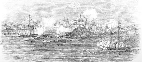 Обстрел Соловецкого монастыря английскими пароходами «Бриск» и «Миранда». The illustrated London News. 1854. September, 9.
