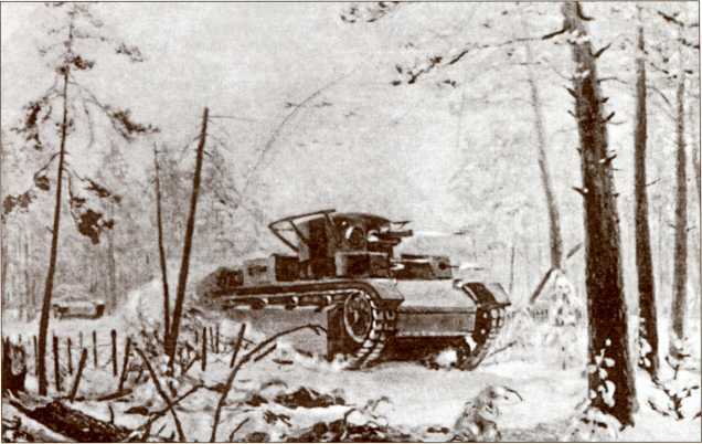С картины художника Львова «Танк „Киров“ переходит белофинскую границу».