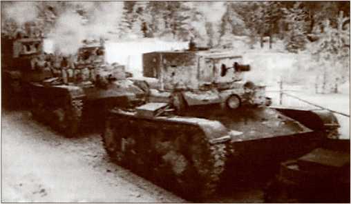Колонна огнеметных ХТ-130 на Карельском перешейке.